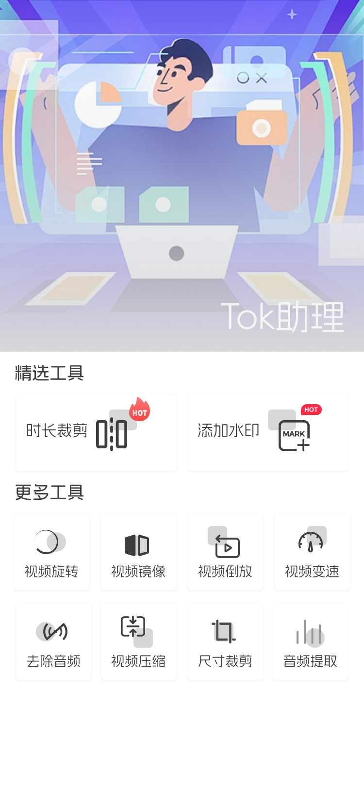 我司旗下tok帮手是一款剪辑软件专为创意和效率设计,它拥有一个用户友好的界面,即便是剪辑新手也能快速上手。软件支持高清导入和导出,兼容多种流行格式,确保了广泛的适用性。核心功能包括添加水印、旋转、倒放、去除音频、音频提取、压缩等便捷的剪辑功能。用户可以轻松剪切、拼接,增强视频的视觉吸引力。无论是制作家庭视频、短片还是专业级影片,这款软件都能提供所需的一切工具,让视频剪辑变得简单而有趣。